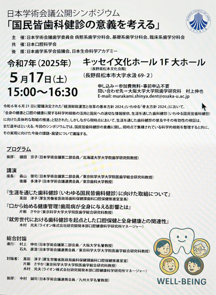 日本学術会議公開シンポジウム「国民皆歯科健診の意義を考える」
